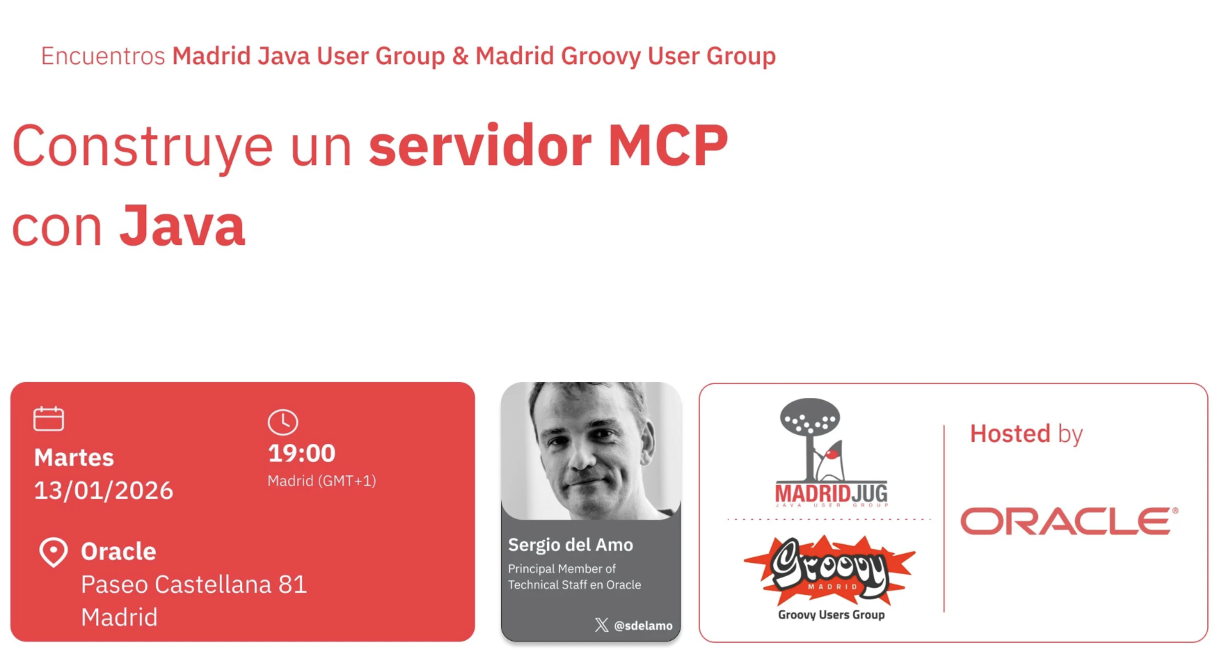 I delivered a talk in Spanish about how to build an MCP server using Java frameworks like Micronaut, Spring Boot, and Quarkus at Madrid JUG.